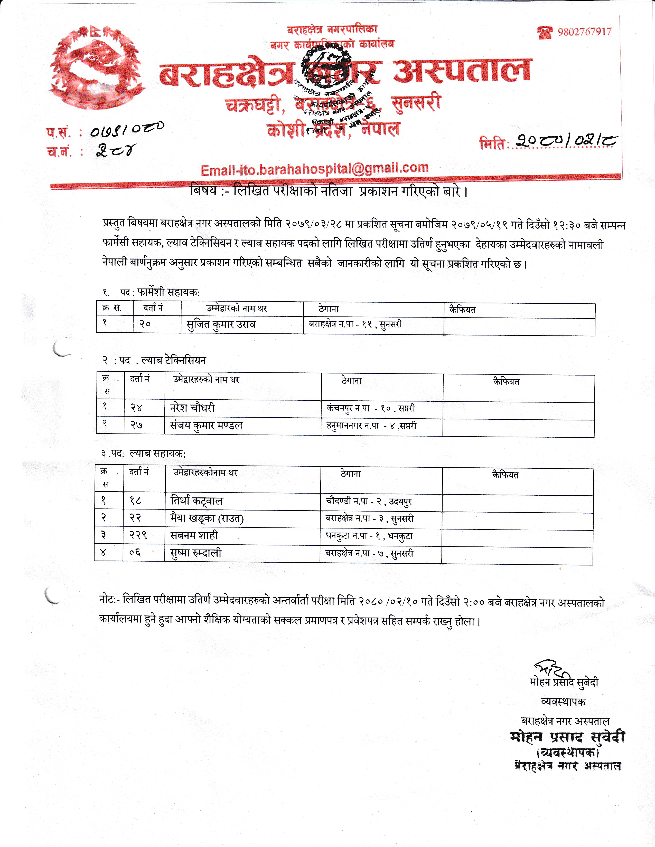वि.न ०३/०४/०५/२०७९/080 को लिखित परिक्षाको नतिजाको सूचना